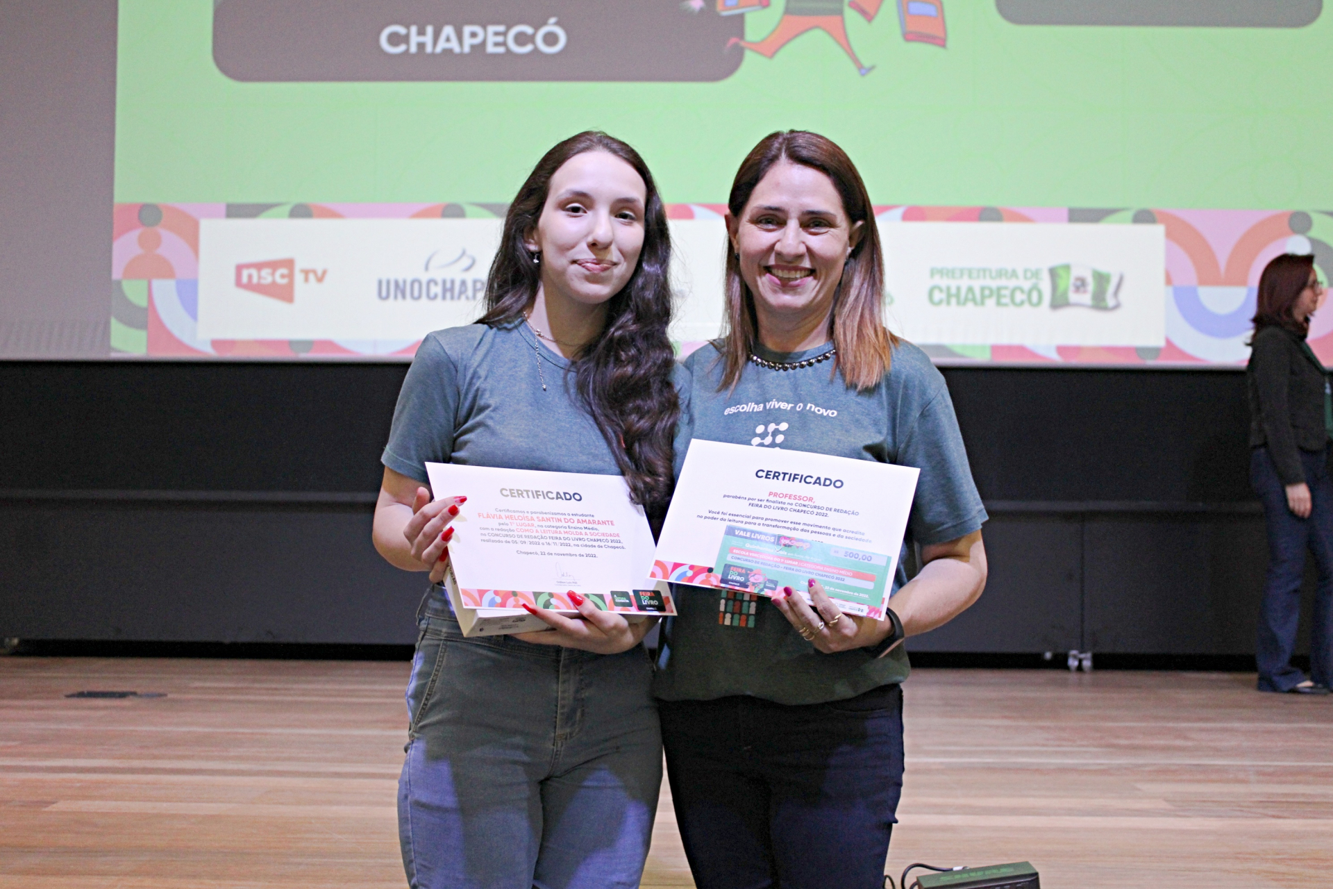 A dinâmica da argumentação rendeu frutos para além da sala de aula. No dia 22 de novembro, o Concurso de Redação chegou ao fim e as melhores produções foram premiadas. Entre elas, estava a redação intitulada ‘Como a leitura molda a sociedade’, escrita pela aluna Flávia Heloísa Santin do Amarante, do Colégio Unochapecó, no lugar mais alto do pódio da categoria ‘Ensino Médio’. Mais de 80 redações concorreram na categoria.