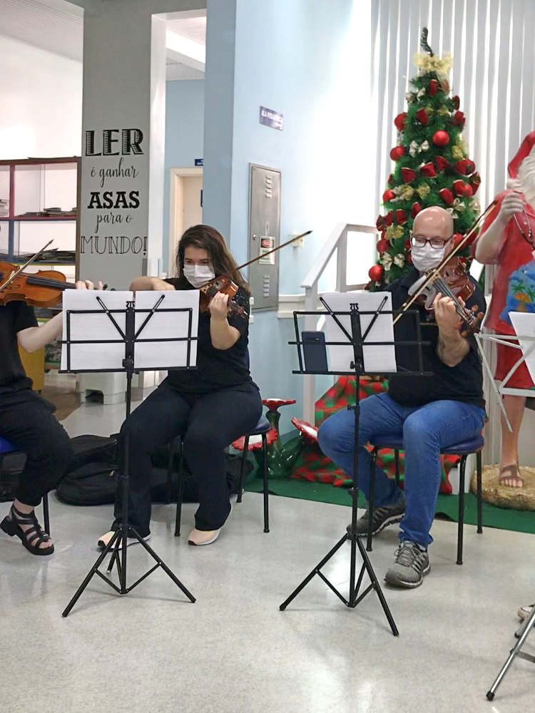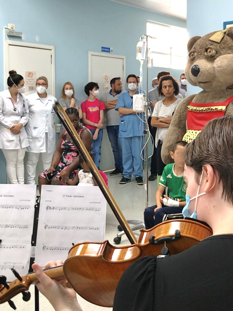 Na manhã do dia 15 de dezembro de 2022, a Orquestra de Câmara da Unochapecó abriu suas partituras e se apresentou para um público diferente. Dessa vez, longe das luzes e coxias, e dentro de um ambiente repleto de cuidados, protocolos e preocupações, no Hospital Regional do Oeste e no Hospital da Criança Augusta Müller Bohner. Junto da performance, os brinquedos foram entregues aos novos donos, as crianças em tratamento de saúde. O professor Gustavo Pereira Malfatti, regente da Orquestra, não tinha ideia do quanto seria emocionante participar dessa entrega.